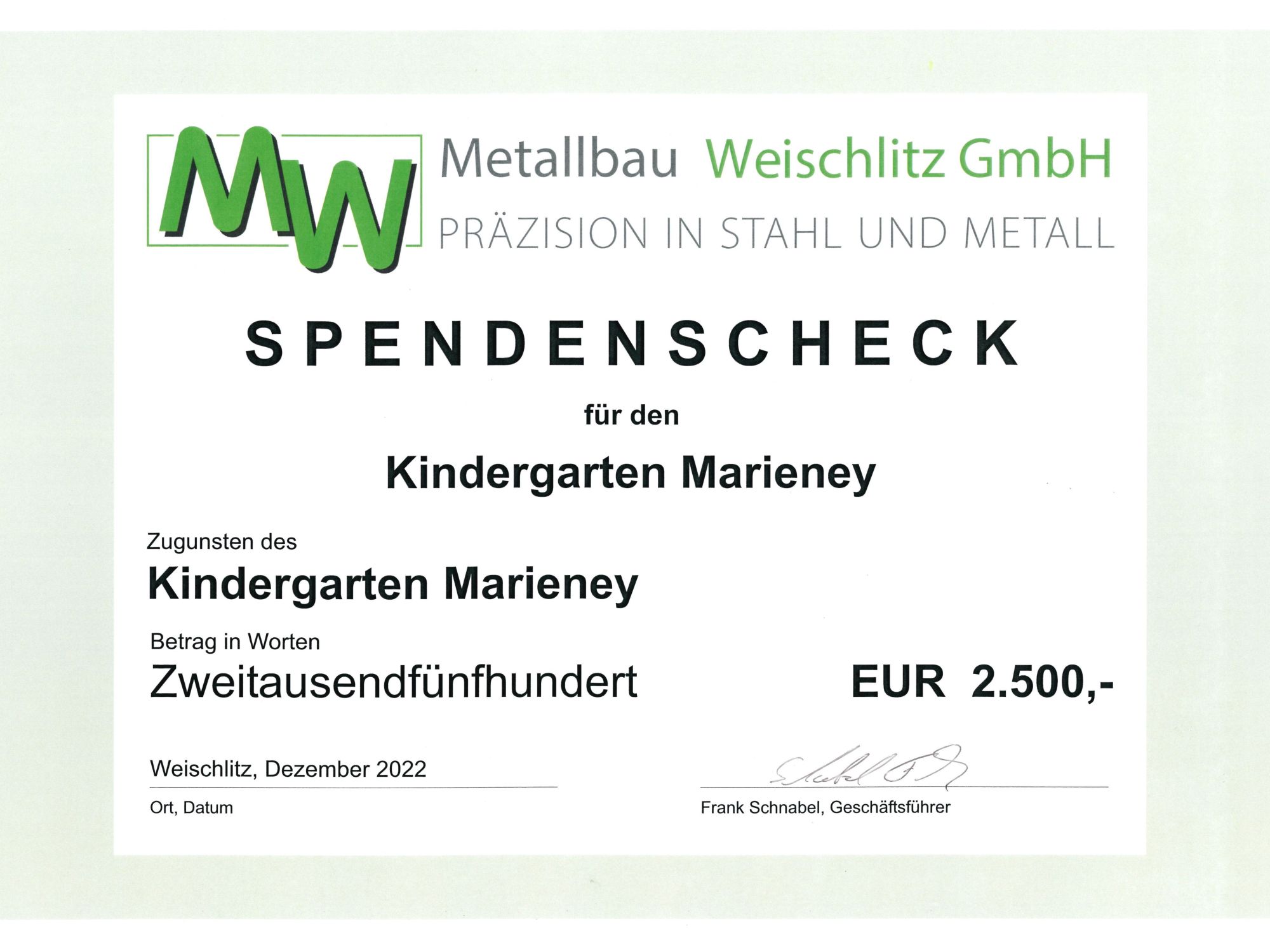 - Gemeinde Mühlental, insbesondere die Kindertagesstätte in Mariney